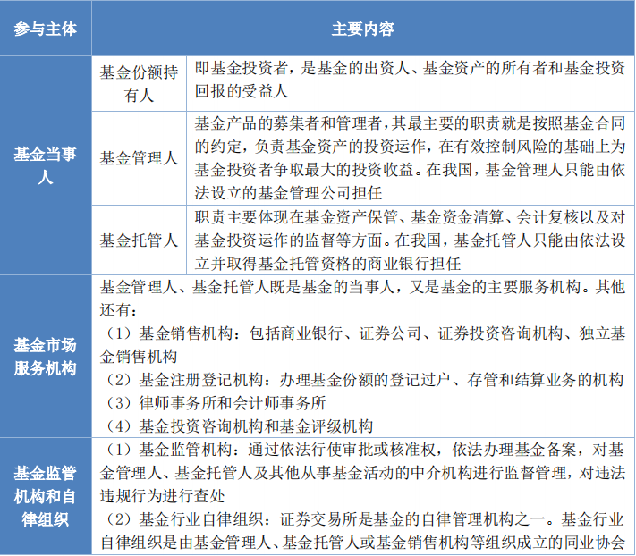 證券投資基金的參與主體
