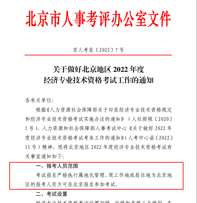 因為中級經(jīng)濟師實行屬地化報名規(guī)則,所以大部分中級經(jīng)濟師報名簡章會標準報考人員范圍,例如2022年北京中級經(jīng)濟師報名簡章: