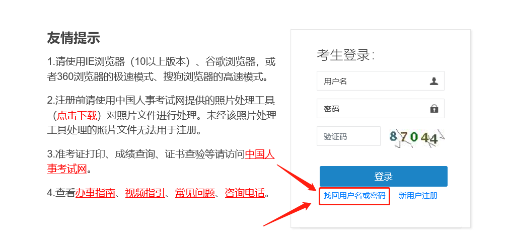 報名時需要用到我們的中國人事考試網(wǎng)官方賬號和密碼,由于部分考生之前注冊過官方賬號,長時間未登錄,難免會產(chǎn)生遺忘的現(xiàn)象,但是不用著急,我們只要按以下的按鈕即可按流程“找回密碼”: