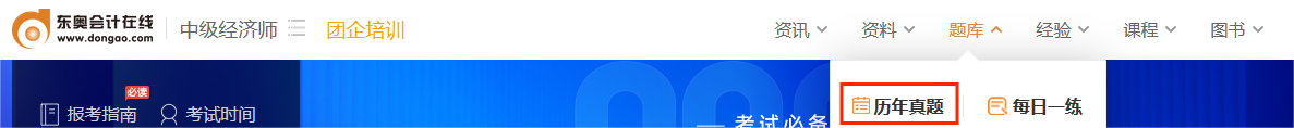 第二步:進(jìn)入中級經(jīng)濟(jì)師頻道后,通過題庫欄目,找到中級經(jīng)濟(jì)師考試歷年試題。