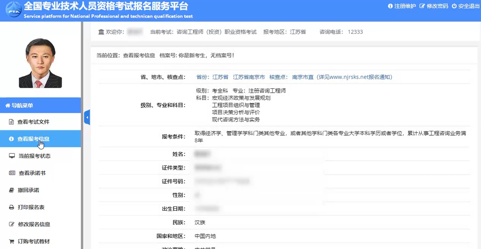 1.查看報考信息:中級經(jīng)濟(jì)師報名信息填寫后可在導(dǎo)航欄目查看報考信息,請認(rèn)真核對