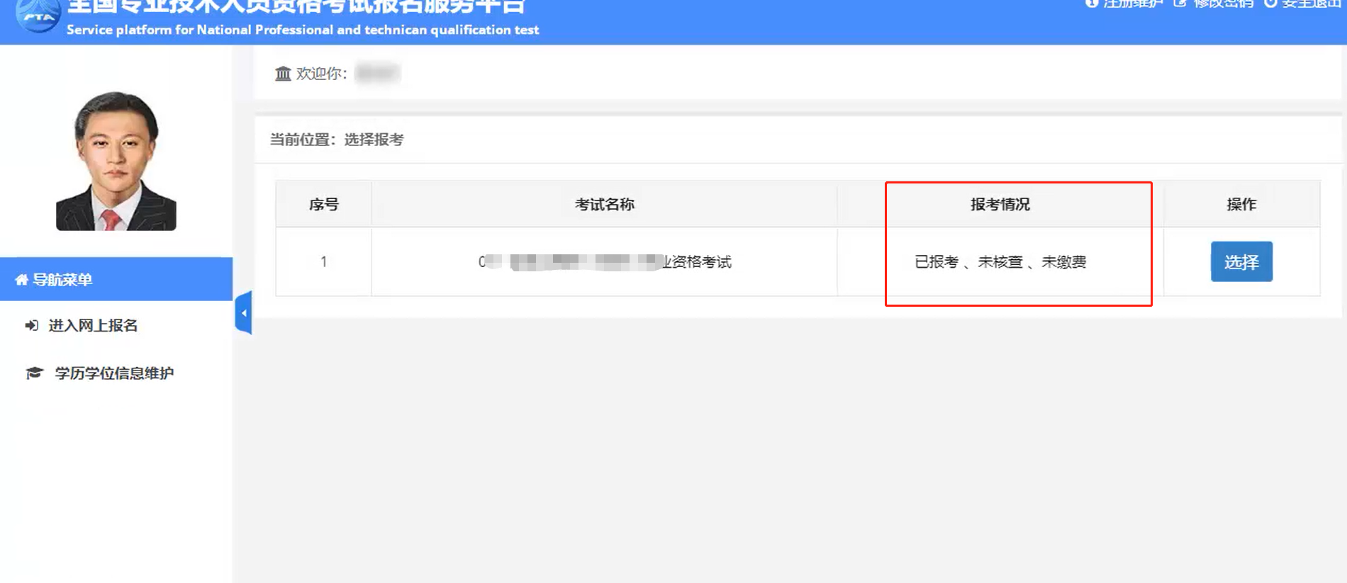 3.如無需修改報名信息后可退出報名,查看報考狀態(tài):