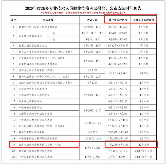 ● 2025年度部分專業(yè)技術人員職業(yè)資格考試報名、公布成績時間預告