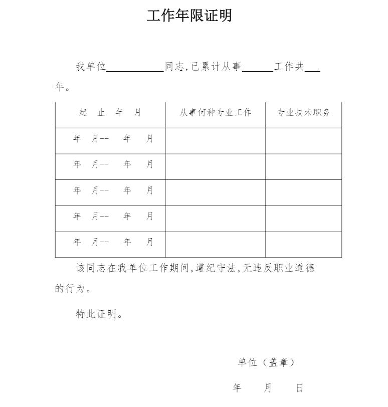 中級經(jīng)濟師考試報名工作年限證明模版及相關(guān)要求!