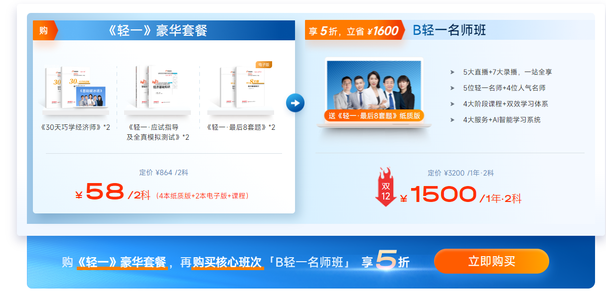 《輕松過關(guān)?1》套餐享B班5折優(yōu)惠,1年2科領(lǐng)券再減100!