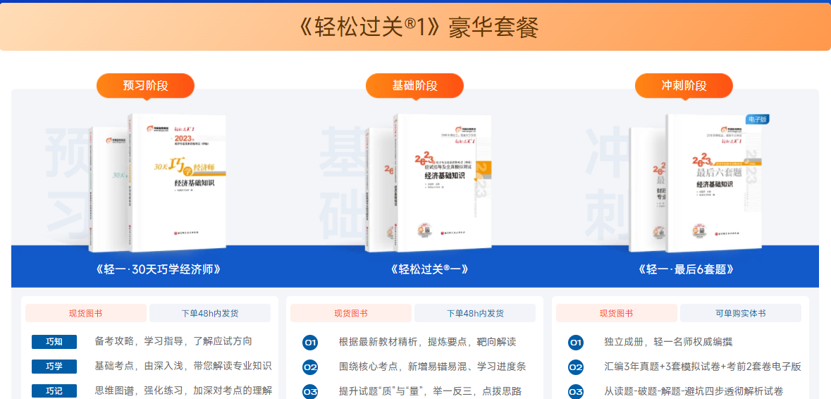 距離2023年中級(jí)經(jīng)濟(jì)師考試的時(shí)間已經(jīng)不足80天,此時(shí)未開始備考或剛剛起步的考生需要規(guī)劃一下備考了,中級(jí)經(jīng)濟(jì)師雖然都是選擇題,但是其難度不容小覷,無論從知識(shí)延伸還是從答題速度上,考生們都是需要有一定的準(zhǔn)備后方可完成;報(bào)課學(xué)習(xí)的優(yōu)勢(shì)就在于有一些考生抓不住重點(diǎn),并且對(duì)于中級(jí)經(jīng)濟(jì)師這門考試的了解比較少,通過老師們的講解幫助同學(xué)們找到解題思路,但是最終選擇自學(xué)還是報(bào)課學(xué)習(xí)取決于考生自身,想要通過報(bào)課學(xué)習(xí)的考生看過來,東奧26周年慶,中級(jí)經(jīng)濟(jì)師頻道的好書好課均有所優(yōu)惠:
