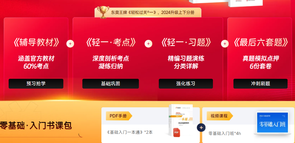 2024年中級(jí)經(jīng)濟(jì)師全新考季正式開(kāi)始,無(wú)論同學(xué)們是“中級(jí)經(jīng)濟(jì)師”的新考生或老同學(xué),備考沒(méi)有“短途”可走,找到適合自己的復(fù)習(xí)資料直觀重要,尤其是在中級(jí)經(jīng)濟(jì)師官方教材發(fā)布之前,不知道從哪里開(kāi)始學(xué),學(xué)什么的同學(xué),2024年中級(jí)經(jīng)濟(jì)師《輕一》圖書(shū)組合全新升級(jí),八本書(shū)覆蓋備考的全階段,價(jià)格僅需兩位數(shù)!在品質(zhì)和價(jià)格之間無(wú)需做選擇,我們都要!