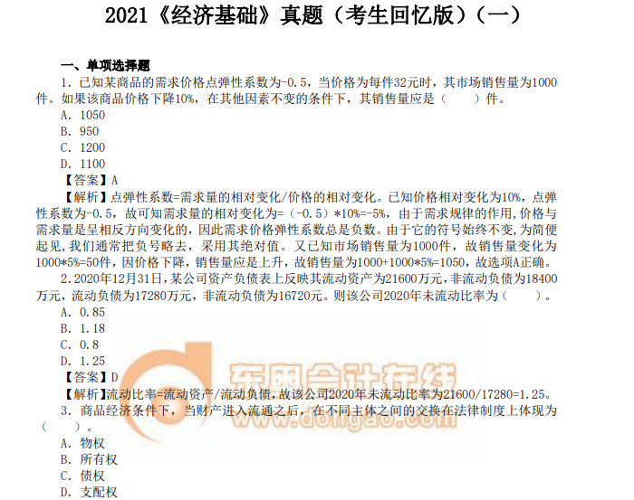 2023年中級經(jīng)濟師考試將至,隨著復習接近尾聲,在沖刺期的同學們此時對于“整套類試卷”的需求不斷上升。中級經(jīng)濟師歷年真題是比較重要且全面的復習資料;下面為同學們總結(jié)了2020年至2022年中級經(jīng)濟師《經(jīng)濟基礎(chǔ)》科目的真題匯總(考生回憶版),快快小試身手吧!