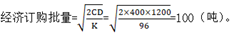 企業(yè)為了降低庫存成本,采用固定訂購量系統(tǒng)控制庫存,某種原材料的年需求量為1200噸,單次訂貨成本為400元,每年每噸的持有成本為96元,則該種原材料的經(jīng)濟訂購批量為( )噸。(根據(jù)真題改編)