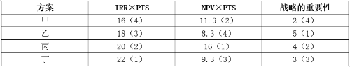某公司采用動(dòng)態(tài)排序列表法進(jìn)行技術(shù)創(chuàng)新方案的選擇,詳細(xì)數(shù)據(jù)如下表所示。其中,IRR表示項(xiàng)目的預(yù)期收益率,PTS表示技術(shù)成功的概率或可能性,NPV表示項(xiàng)目未來(lái)預(yù)期收益的凈現(xiàn)值。則該企業(yè)最終選擇的方案是( )。