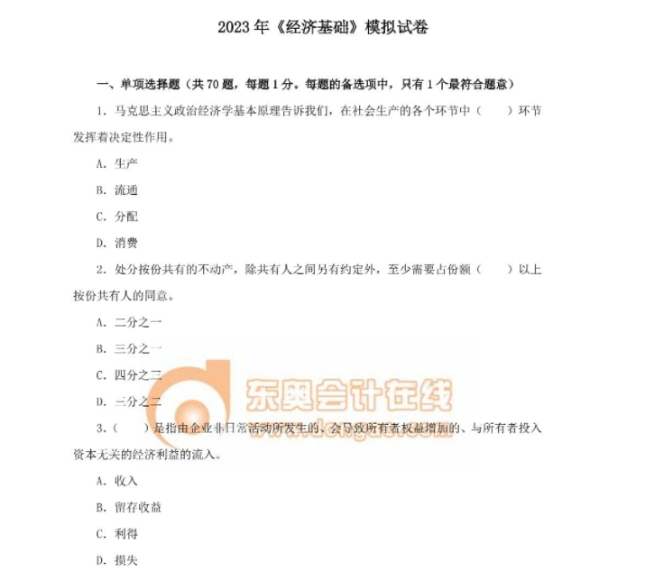 2023年中級(jí)經(jīng)濟(jì)師考試進(jìn)入了最后一周的沖刺階段,大部分考生已經(jīng)完成了備考,并且以模擬試卷、歷年真題為主展開(kāi)考前全面復(fù)習(xí),模擬試卷是比較全面的習(xí)題,考查面較廣,下面東奧會(huì)計(jì)在線的老師們?yōu)橥瑢W(xué)們準(zhǔn)備了2023年中級(jí)經(jīng)濟(jì)師模擬試卷,答案及試題均可下載使用,具體如下。
