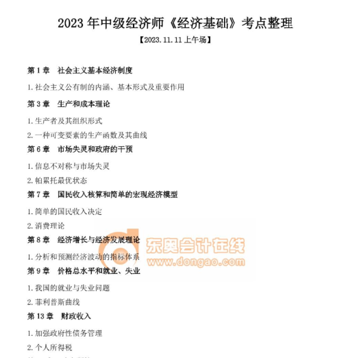“《經(jīng)濟基礎(chǔ)》2023年11月11日-12日考點整理”