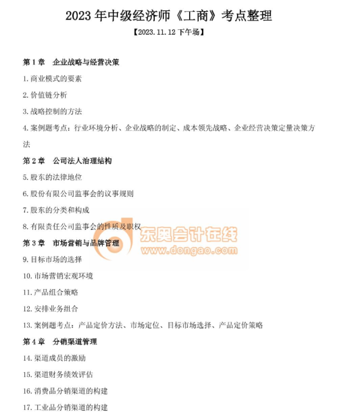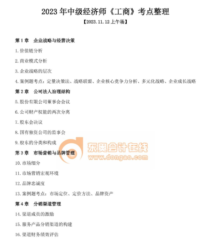 2023年中級經(jīng)濟師考試結(jié)束后,同學(xué)們通過真題回憶版對于考題的解析以及考試大致情況有了一定的了解,那么下面東奧會計在線的老師們針對考題中出現(xiàn)的考點,為同學(xué)們作出整理版,通過考點整理可觀察哪些是比較高頻的知識點等,下載入口如下。