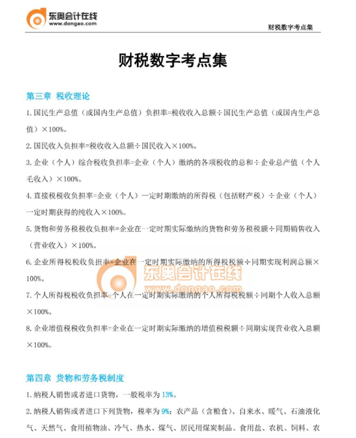 《財(cái)政稅收》數(shù)字考點(diǎn)集