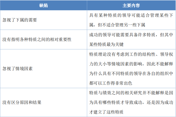 特質(zhì)理論的缺陷