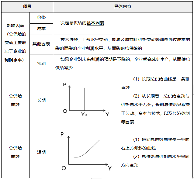 總需求曲線 | (1)假定其他因素不變,只分析價格總水平與總需求的關(guān)系??傂枨笄€是向右下方傾斜的 (2)價格總水平對消費、投資和出口的需求的影響 ①財富效應(yīng):由價格總水平的變動引起居民收入及財富的實際購買力的反向變動,從而導(dǎo)致總需求反向變動的現(xiàn)象 ②利率效應(yīng):由價格總水平變動引起利率變化,利率與投資、消費及總需求的反方向變化的現(xiàn)象 ③出口效應(yīng):由價格總水平通過匯率變動影響出口需求的變化并與總需求呈反方向變化的現(xiàn)象 |
