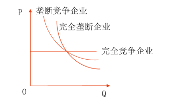 壟斷競爭市場上企業(yè)的需求曲線和完全壟斷市場上企業(yè)的需求曲線相同,均向右下方傾斜。