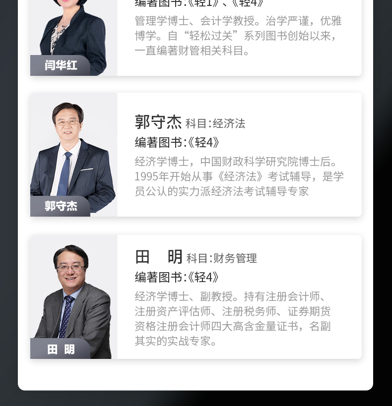 考證以來(lái)都是用的輕一從初級(jí)到中級(jí)對(duì)我來(lái)說(shuō)輕一是非常的全面的,同時(shí)又有歷年真題和章節(jié)練習(xí),單靠輕一拿下中級(jí)完全沒(méi)問(wèn)題??
