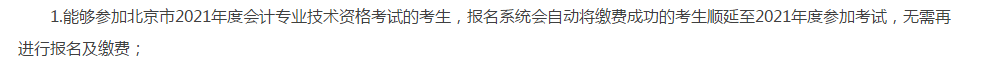 既然2020年北京市會計資格考試延期至2021年,也就是說如果您在2020年報名參加了中級會計考試,但是由于考試延期至2021年,而您還想要參加2021年的考試,在您不申請退費的前提下,2021年報名及繳費時您則無需再報名繳費,2020年的報名信息系統(tǒng)將自動順延至2021年!