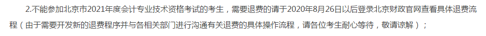 有很多考生由于今年在北京上學(xué)或工作,所以在北京報名參加考試,但是2021年不繼續(xù)在北京發(fā)展了怎么辦?其實在政策中也給出了相應(yīng)的解釋,也就是如果不能在北京參加2021年的考試,大家可以申請退費,但是請大家把握好退費時間,并在規(guī)定時間內(nèi)完成退費,如果在規(guī)定時間內(nèi)沒有完成退費,則系統(tǒng)會默認為您在2021年可以在北京參加考試,會為您自動順延至2021年參考!如果大家申請退費,是沒有任何限制的,只要2020年度報名北京參加會計初、中、高級專業(yè)技術(shù)資格考試的考生,均可以申請退費。