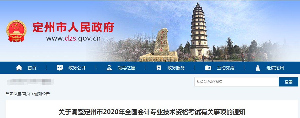 關(guān)于調(diào)整定州市2020年全國會計專業(yè)技術(shù)資格考試有關(guān)事項的通知