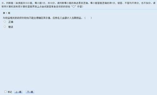 判斷題答題時(shí),考生直接用鼠標(biāo)點(diǎn)擊備選項(xiàng)中認(rèn)為正確的選項(xiàng)前的按鈕即可。如需修改答案,用鼠標(biāo)點(diǎn)擊其他備選項(xiàng)前的按鈕,原選擇的選項(xiàng)將被自動(dòng)替換。如需撤銷(xiāo)已經(jīng)選中的選項(xiàng),再次點(diǎn)擊該選項(xiàng)前的按鈕即可。