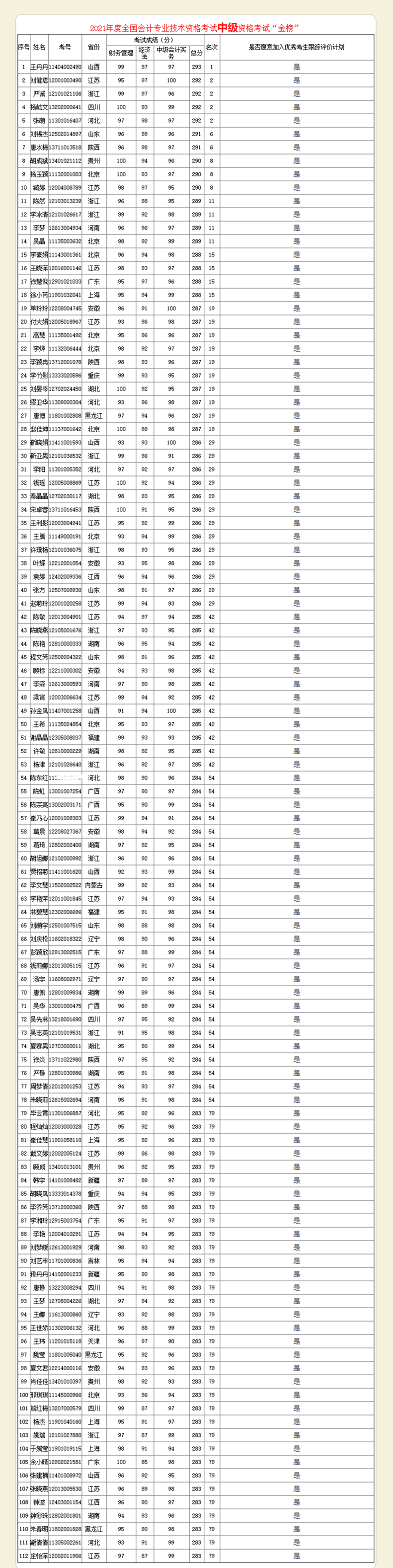 2021年全國中級會計職稱金銀榜揭曉,最高分293分!