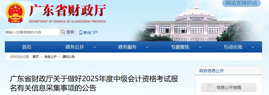 廣東省財政廳關于做好2025年度中級會計資格考試報名有關信息采集事項的公告