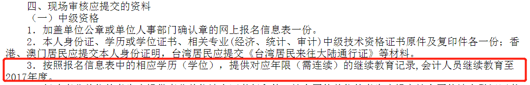 4、2018年部分地區(qū)中級會計資格審核需提供繼續(xù)教育記錄