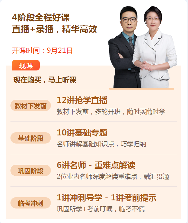 在教材下發(fā)前,不僅能提前預(yù)習(xí),還能提前聽(tīng)課,通過(guò)4個(gè)階段的課程,讓你對(duì)21年中級(jí)考試有一個(gè)整體的把握!