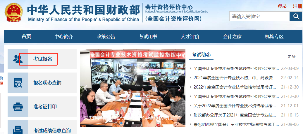 官方入口:直接登錄全國會計資格評價中心官網(wǎng)(http://kzp.mof.gov.cn/),點擊【考試報名】,進入報名入口。