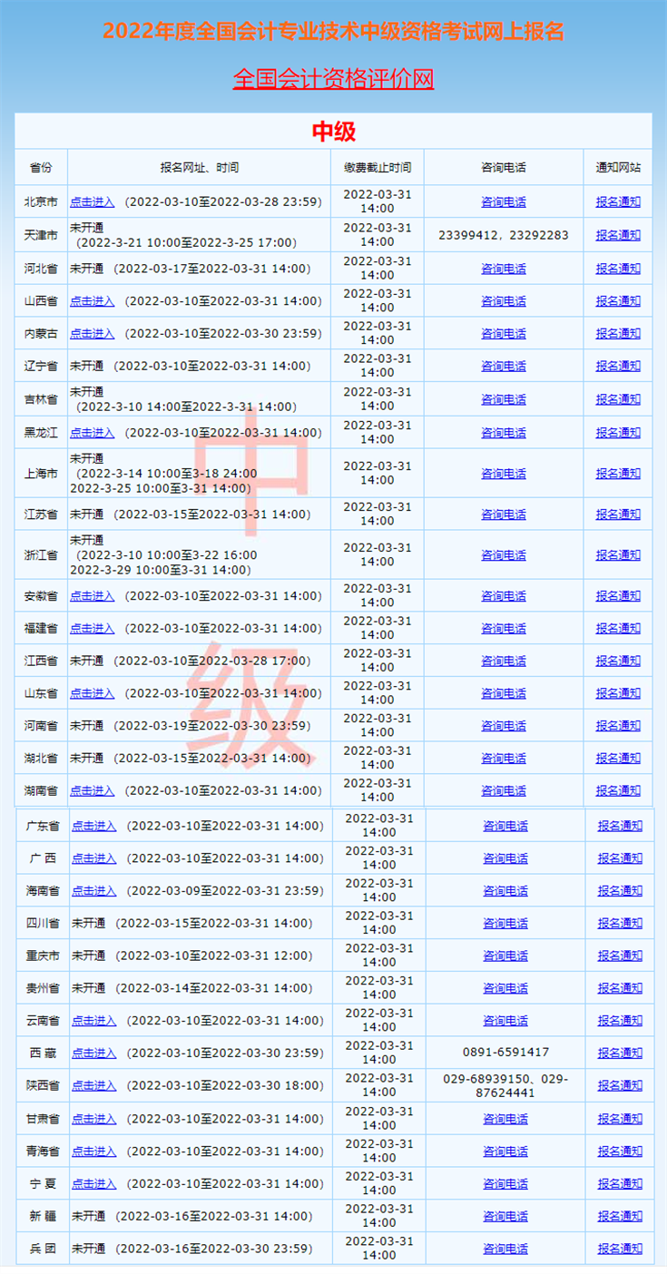 快捷入口:2022年各地區(qū)中級會計報名入口匯總>>>