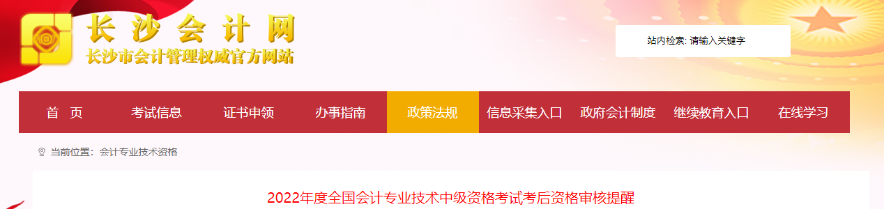 湖南省長(zhǎng)沙市2022年中級(jí)會(huì)計(jì)考試考后資格審核的通知