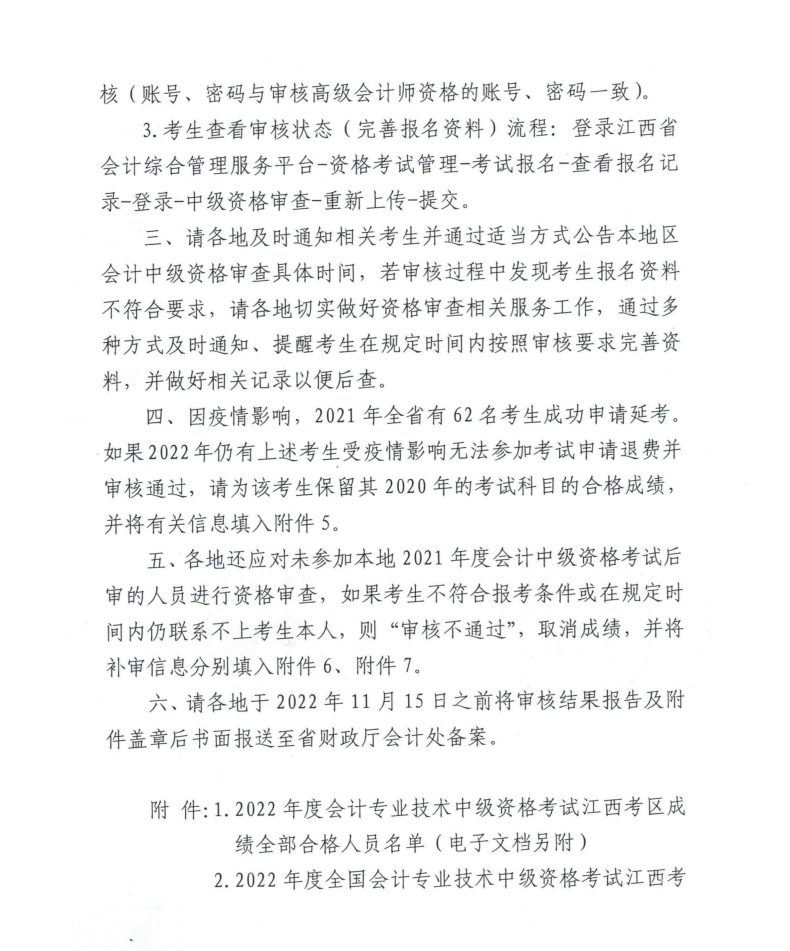 江西省新余市2022年中級會計(jì)考試考后資格審核的通知