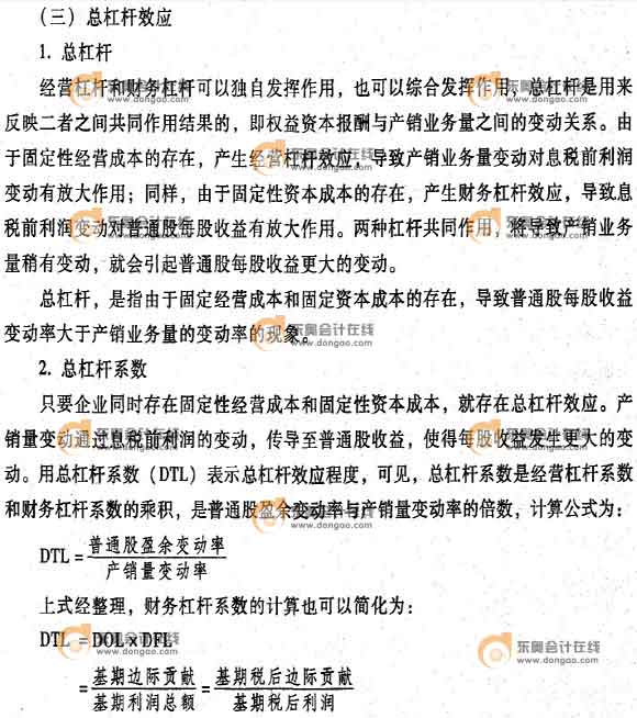 2014年《財務管理》高頻考點:杠桿效應(3)