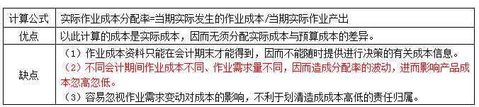 。1)實(shí)際作業(yè)成本分配率
