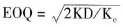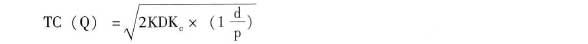 當F1、K 、D 、U 、F2 、Kc 為常數(shù)時,TC 的大小取決于Q 。為了求出TC 的極小值,對其進行求導演算,可以得出經(jīng)濟訂貨基本模型,公式如下: