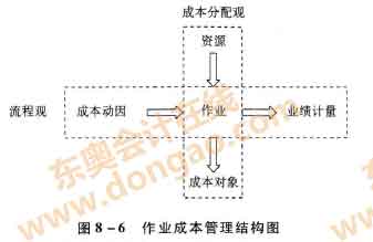 圖中水平部分反映了流程觀,它為企業(yè)提供所引起作業(yè)的原因(成本動因)以及作業(yè)完成情況(業(yè)績計量)的信息。流程觀關注的是確認作業(yè)成本的根源、評價已經(jīng)完成的工作和已實現(xiàn)的結果。企業(yè)利用這些信息,可以改進作業(yè)鏈,提高從外部顧客獲得的價值。