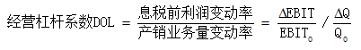 DOL=(EBIT0+F0)/EBIT0=1+F0/EBIT0=1+基期固定成本/基期息稅前利潤