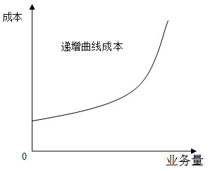 2.遞增曲線變動(dòng)成本,是隨著業(yè)務(wù)量的增加,成本逐步增加,并且增加幅度是遞增的。遞增曲線變動(dòng)成本如:累進(jìn)計(jì)件工資、違約金等。