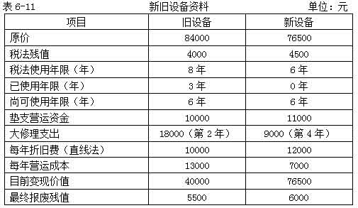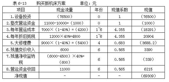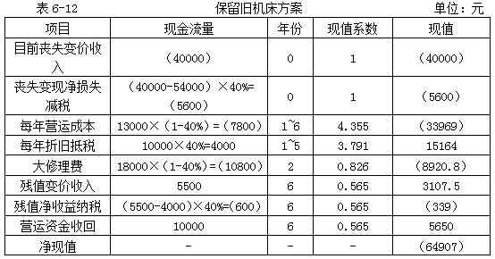 教材【例6-13】宏基公司現(xiàn)有一臺(tái)舊機(jī)床是三年前購(gòu)進(jìn)的,目前準(zhǔn)備用一新機(jī)床替換。該公司所得稅率40%,資本成本率為10%,其余資料如表6-11所示。
