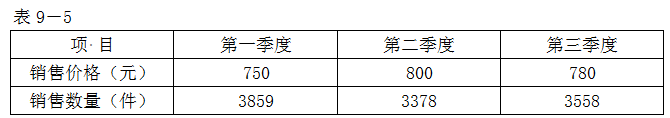某企業(yè)生產(chǎn)銷售戊產(chǎn)品,2012年前三個(gè)季度中,實(shí)際銷售價(jià)格和銷售數(shù)量如表所示9-5。若企業(yè)在第四季度要完成4000件的銷售任務(wù),那么銷售價(jià)格應(yīng)為多少?