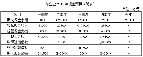 某企業(yè)2015年現(xiàn)金預(yù)算(簡表)如下表所示。假定企業(yè)發(fā)生現(xiàn)金余缺均由歸還或取得流動(dòng)資金借款解決,且流動(dòng)資金借款利息可以忽略不計(jì)。除表中所列項(xiàng)目外,企業(yè)沒有有價(jià)證券,也沒有發(fā)生其他現(xiàn)金收支業(yè)務(wù)。預(yù)計(jì)2015年年末流動(dòng)負(fù)債為4000萬元,需要保證的年末現(xiàn)金占流動(dòng)負(fù)債的比率為50%。