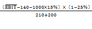 EPS乙=(500-140-1000×15%)×(1-25%)/(210+200)=0.38(元/股)