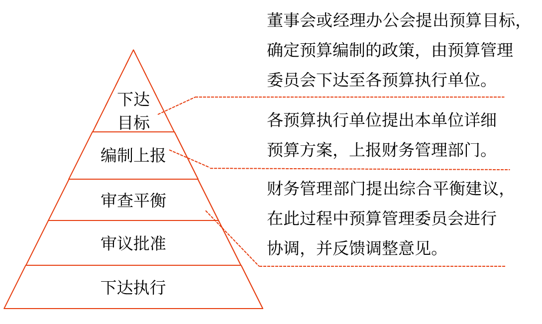 企業(yè)一般按照分級(jí)編制、逐級(jí)匯總的方式,采用自上而下、自下而上、上下結(jié)合或多維度相協(xié)調(diào)的流程編制預(yù)算。