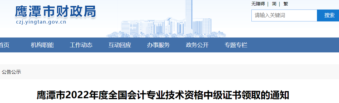 江西省鷹潭市2021年中級會計師證書領(lǐng)取通知鷹潭市2021年度全國會計專業(yè)技術(shù)資格中級證書領(lǐng)取的通知