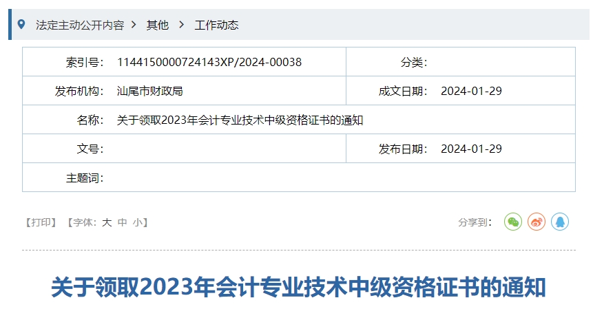 廣東省汕尾市2023年中級(jí)會(huì)計(jì)證書(shū)領(lǐng)取