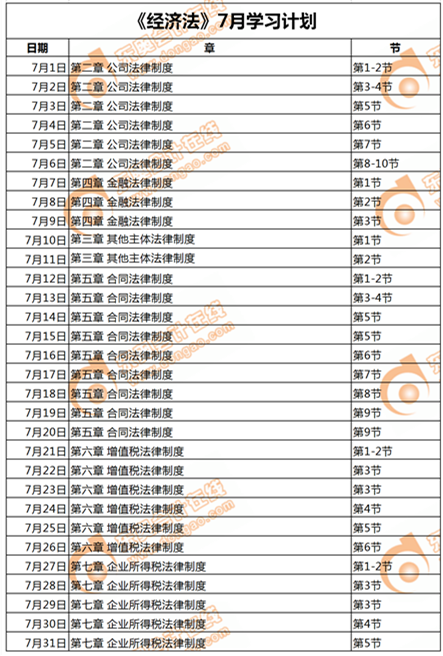 一、中級(jí)會(huì)計(jì)《經(jīng)濟(jì)法》7月學(xué)習(xí)計(jì)劃