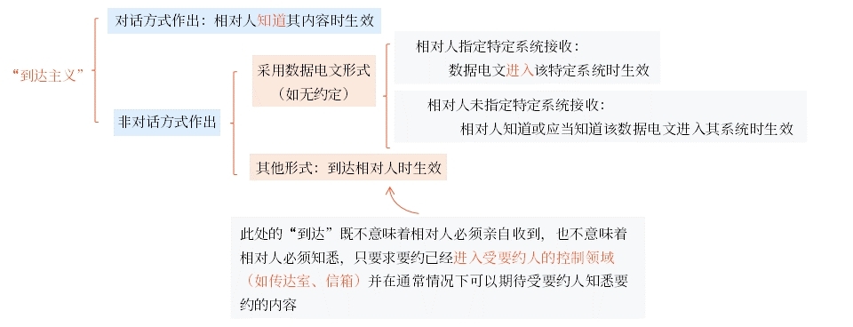要約屬于有相對(duì)人的意思表示,其生效時(shí)間采取“到達(dá)主義”,具體如圖: