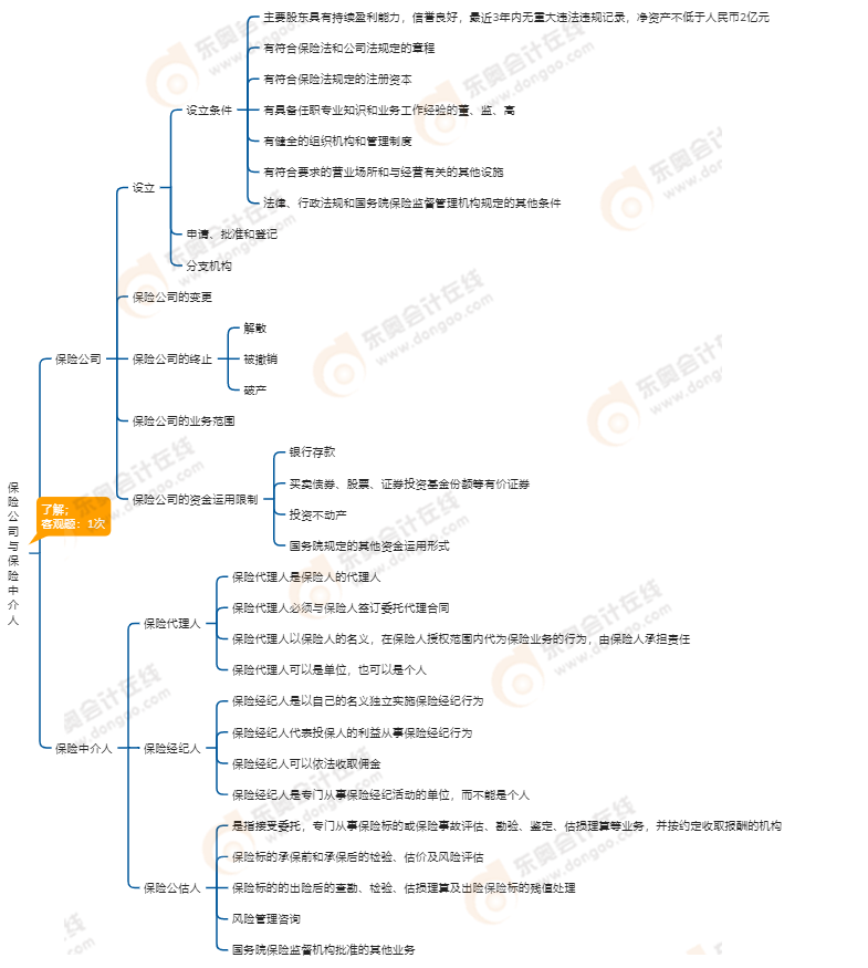 2023年中級(jí)會(huì)計(jì)經(jīng)濟(jì)法第六章思維導(dǎo)圖:保險(xiǎn)公司和保險(xiǎn)中介人